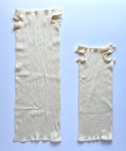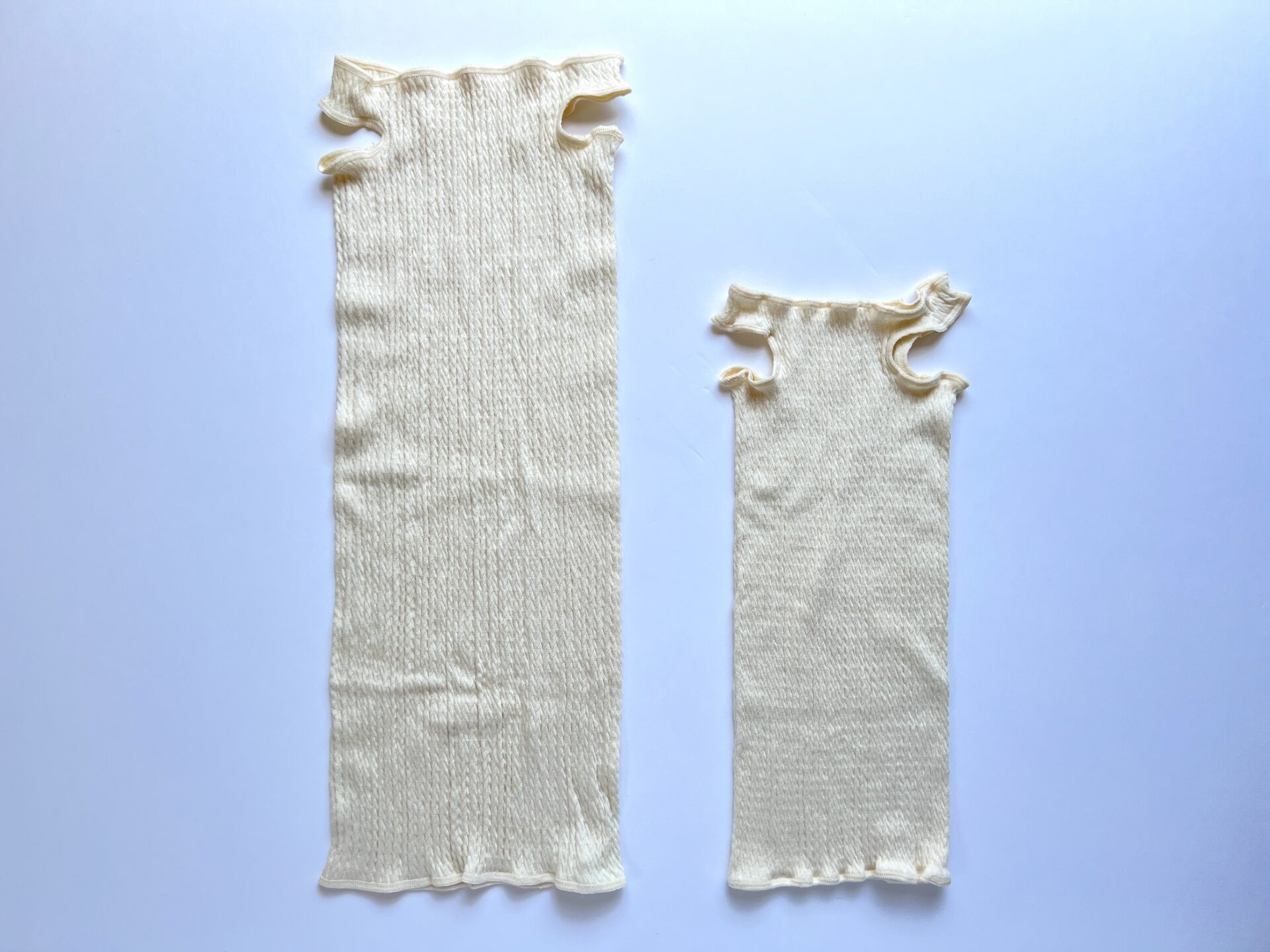 筒状の生地をそのまま使っているので、両サイドに縫い目がなくごろごろしません。弾性系は生地と生地の間を通っているので、直接肌に触れるのはコットンとシルク、お洗濯を繰り返しても柔らかな感触が続くことも魅力のひとつです。
