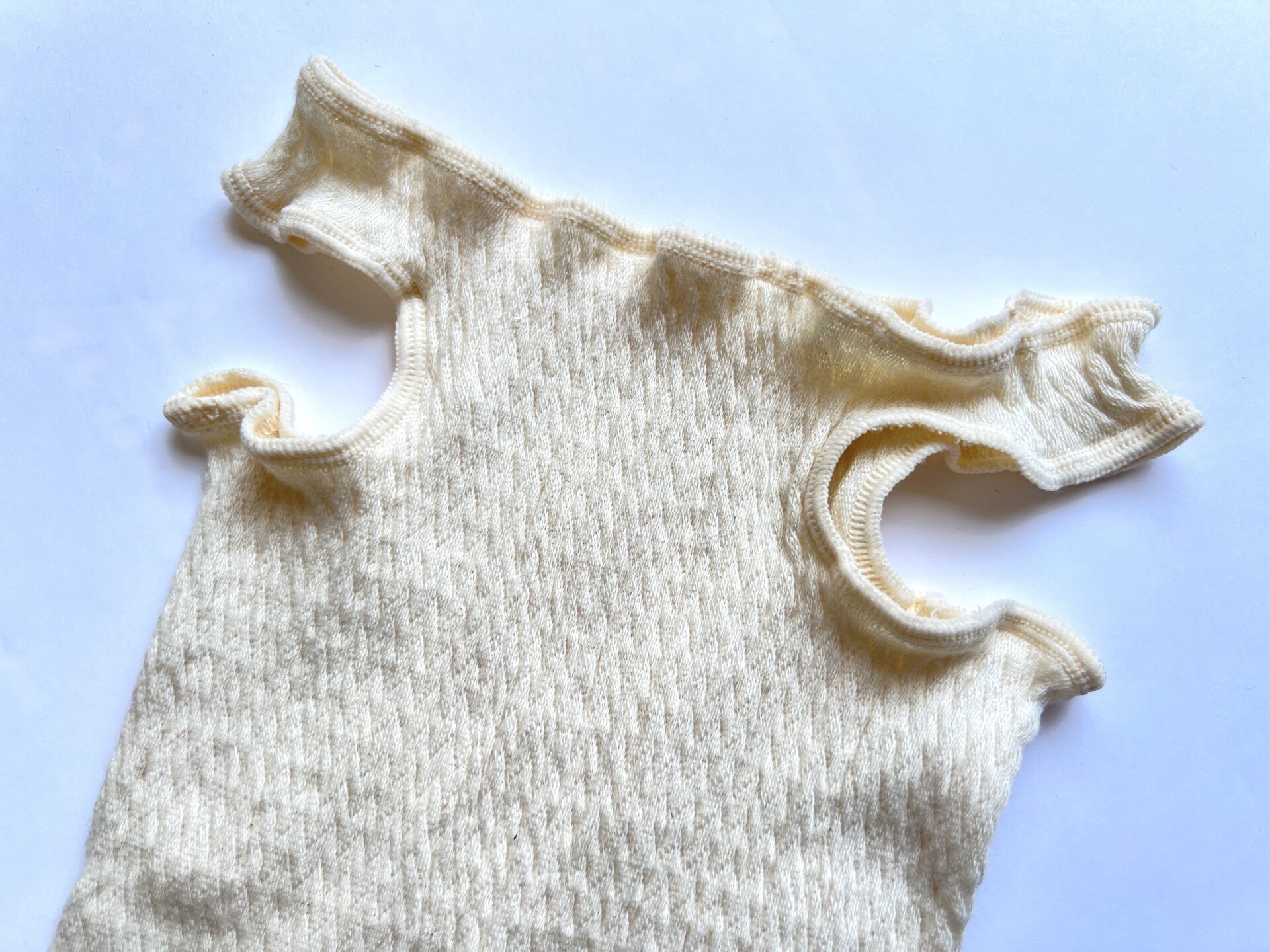 超長綿のビマコットンとシルクの混紡糸で編み上げたベビーからキッズまで対応(サイズ80〜120cm)のキャミソールです。ふんわりとした生地感、触れると心身がほぐれていくようなとても優しく柔らかな肌触りです。少しの力でとても良く伸びる生地なので、お子さまの動きに合わせてフィットします。