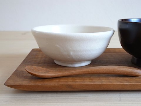 ぽってりとした厚みがありながら手にとってみるとふわりと軽い、生成色のこども碗。低めの高台には全体に釉薬が施され、どこを触ってもすべすべふっくら、優しく柔らかいのです。ごはんの回数を重ねる度に、表面に入った貫入が少しずつ染まって、ゆっくりと育って行くことでしょう。こどもと一緒に。