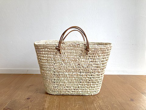 手持ちで、肩にかけて、両方を叶えてくれる2wayの持ち手が施されたバスケットです。毎日のお買い物に、お出かけに。台形の形は長いものも収まり良く。編み目はしっかり美しく、末永くご愛用いただけるかごです。