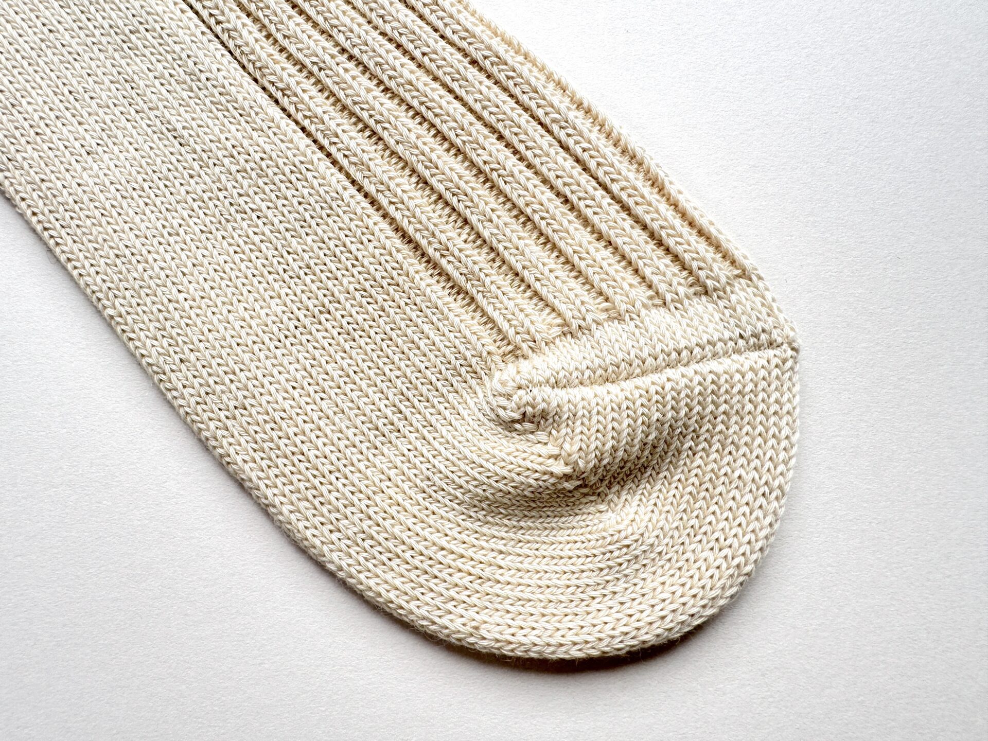 ヤクウールとオーガニックコットンの混紡糸を使用したリブ編みソックスです。